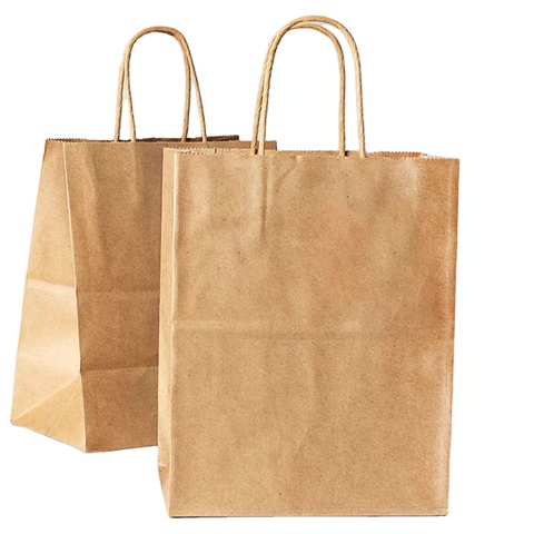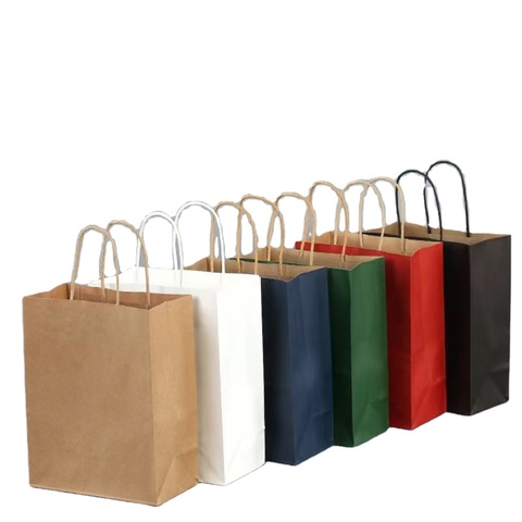 Bolsa de papel de compras con mango retorcido de papel Kraft para llevar alimentos con bolsas de papel de colores
